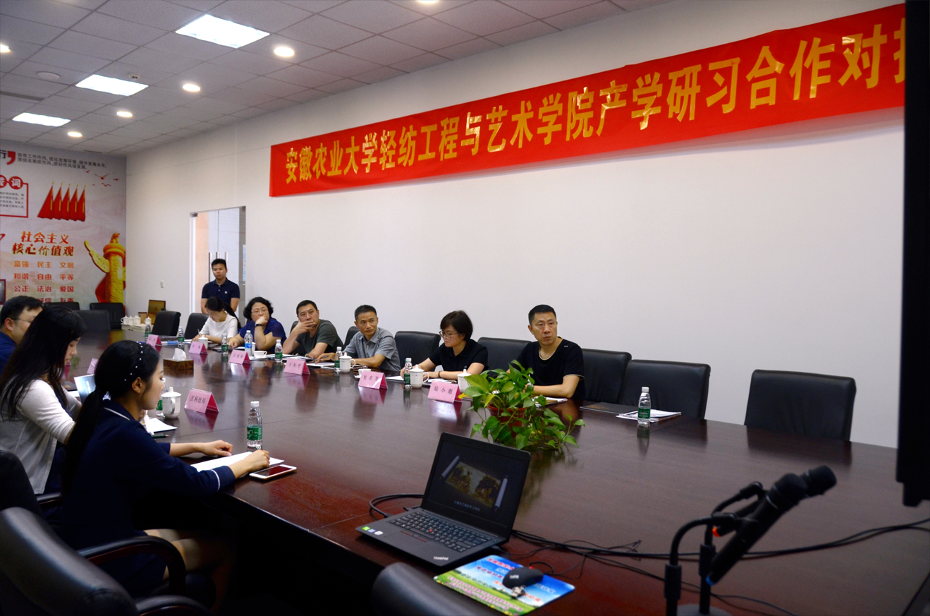 王書記及杜院長分別就輕紡藝術(shù)學(xué)院發(fā)展情況、創(chuàng)新創(chuàng)業(yè)、就業(yè)實踐等工作作了介紹,作為一所集農(nóng)、醫(yī)、文、藝等學(xué)科交叉的綜合性大學(xué),近年來,輕紡藝術(shù)學(xué)院加速開展“展、訓(xùn)、賽、創(chuàng)”為核心的特色創(chuàng)業(yè)教育培養(yǎng)模式,有效的增強了學(xué)生的雙創(chuàng)興趣和能力,是培養(yǎng)高校藝術(shù)設(shè)計專業(yè)創(chuàng)業(yè)型人才的一種有效途徑。通過與地方政府、企業(yè)開展項目化教學(xué)實訓(xùn),以聯(lián)合培養(yǎng)、社會服務(wù)等形式給學(xué)生提供專業(yè)實際操作平臺,有針對性的豐富人才培養(yǎng)模式,促進學(xué)生綜合素質(zhì)的提升。