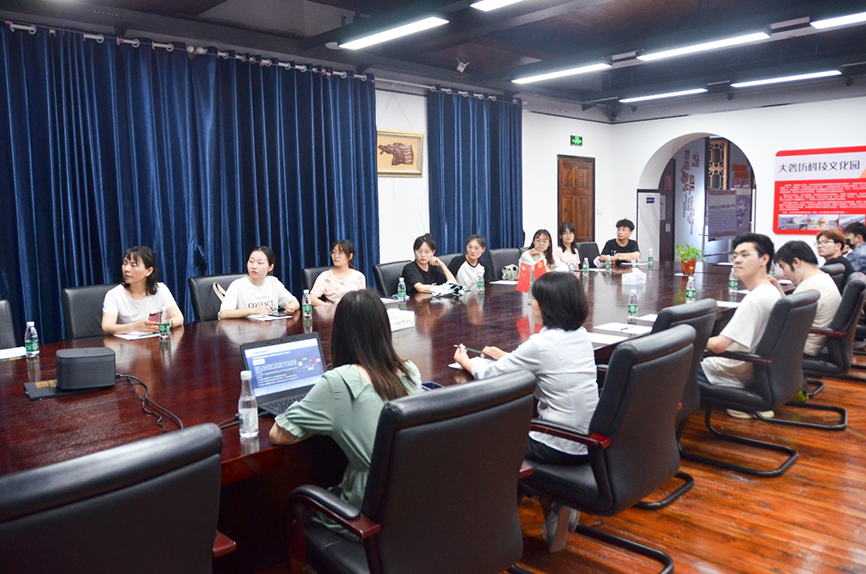 隨后,園區(qū)開展產學研習交流會,會上向調研組系統(tǒng)的介紹了園區(qū)文化歷史、產業(yè)分布、運營特色等,并針對學生的疑問進行解答。